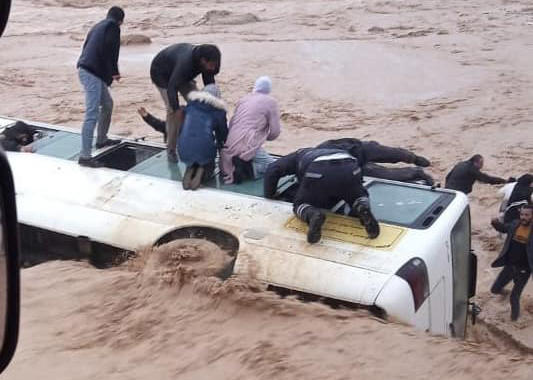 3 إصابات بتدهور باص بسبب السيول بمعان