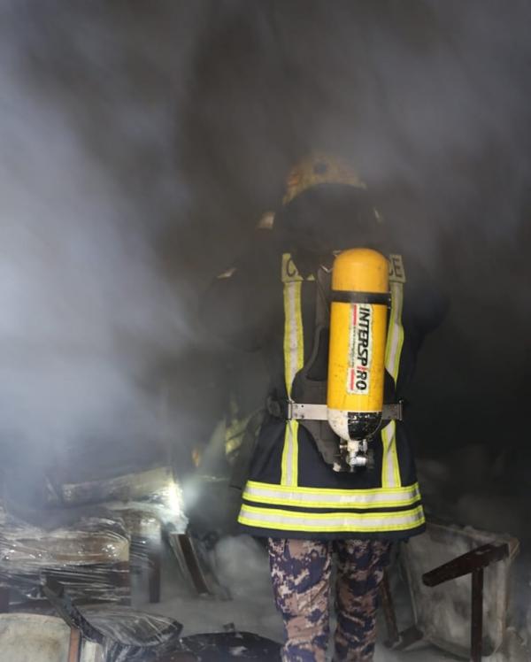 اخماد حريق بمحل يستخدم لتفصيل الأثاث في عمّان