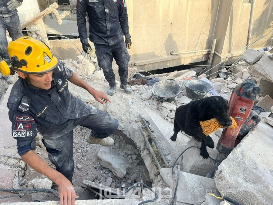 ما نوع الكلاب المستخدمة للبحث عن ضحايا عمارة اللويبدة؟