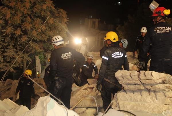 الامن العام يعلن وصوله لثلاث جثث تحت انقاض عمارة اللويبدة