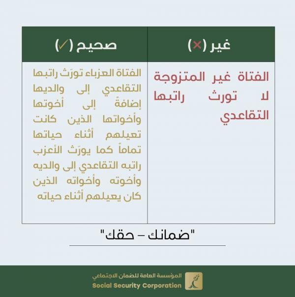 الضمان ترد على الشائعات: العزباء تورث راتبها التقاعدي