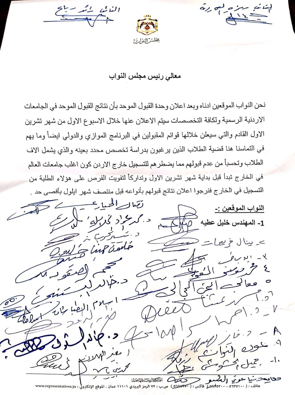 مطالب نيابية بإعلان نتائج القبول الموحد قبل منتصف شهر ايلول