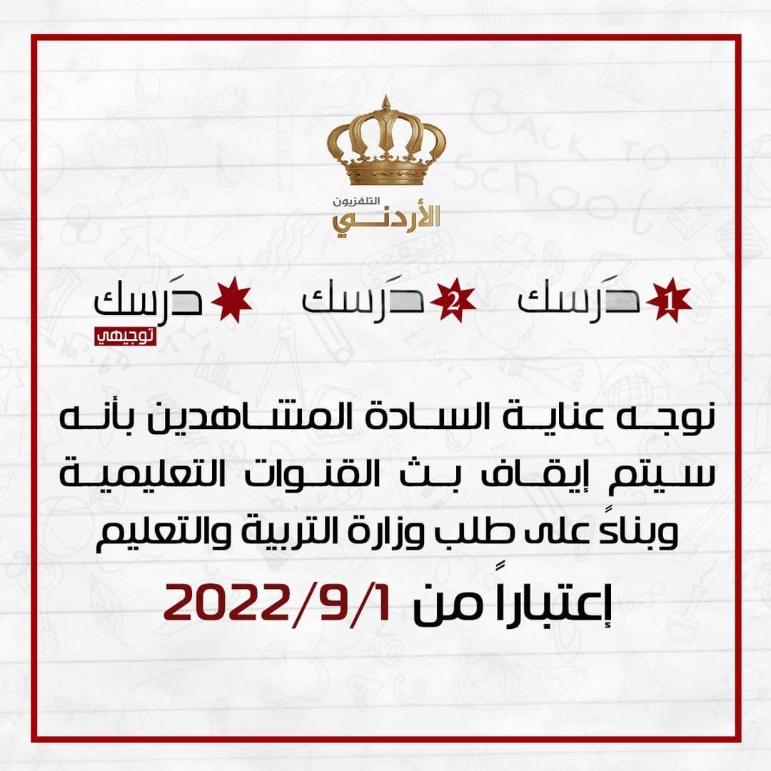 التربية توقف بث القنوات التعليمية في الأردن