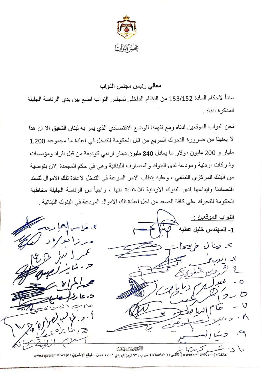 عطية يطالب بإعادة 840 مليون دينار أردني من لبنان