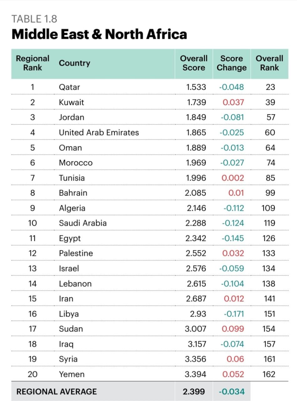 الثالث عربياً ضمن قائمة الدول الخضراء وفي المركز 57 دولياً للعام 2022