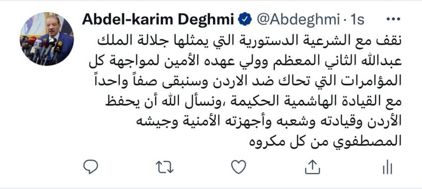 الدغمي: نقف مع الشرعية الدستورية التي يمثلها الملك