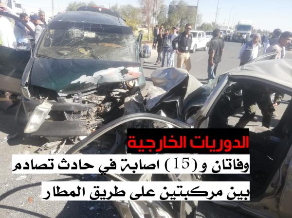 وفاتان و15 اصابة بتصادم مركبتين في طريق المطار