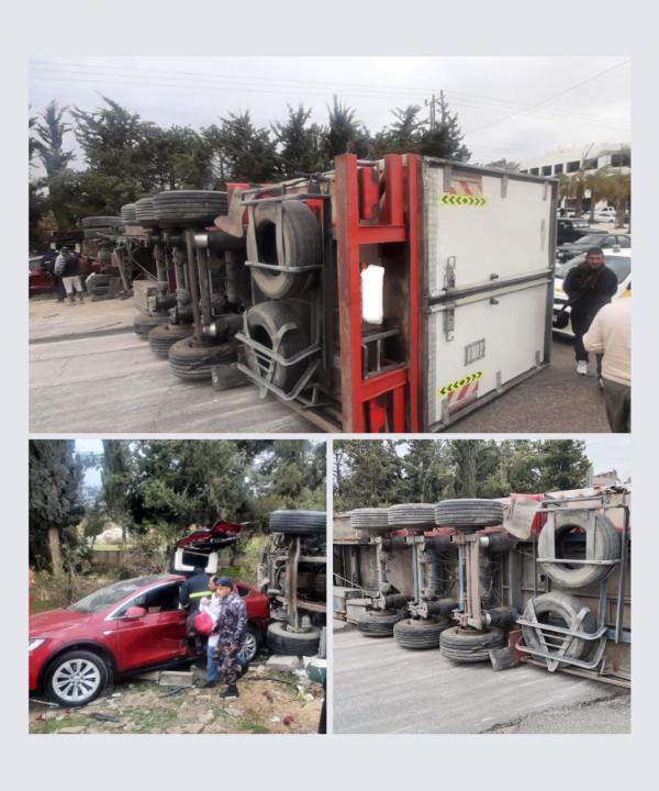 تدهور شاحنة وتصادم 4 مركبات في ناعور