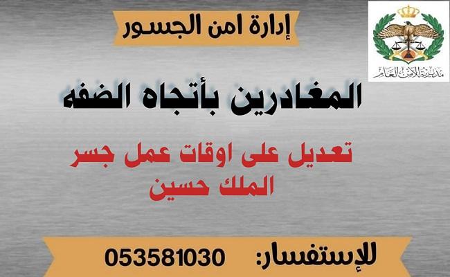 تعديل على أوقات عمل جسر الملك حسين