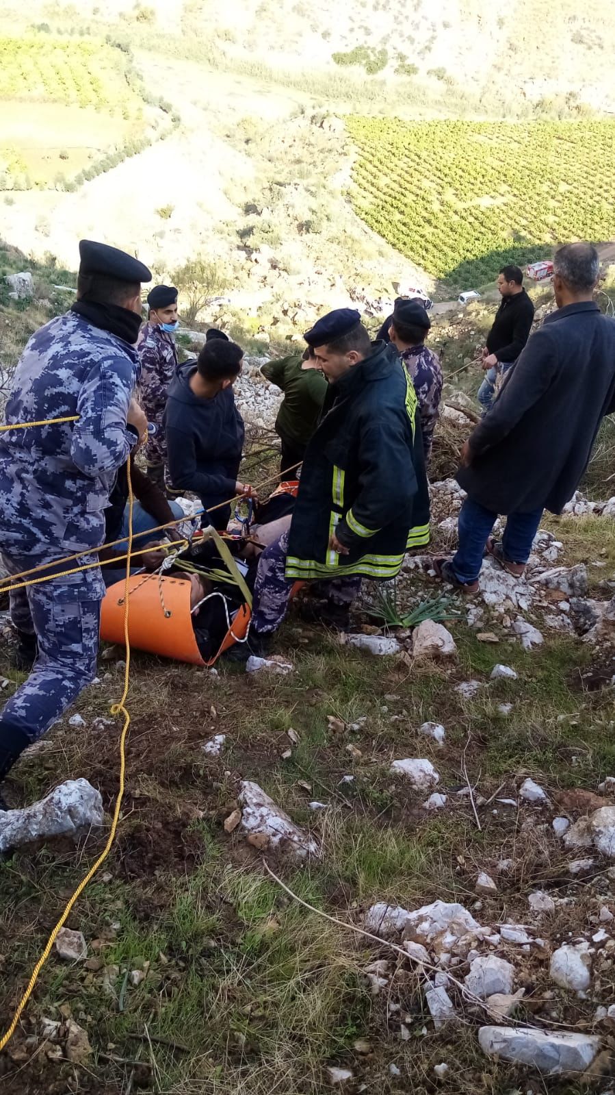 فرق الدفاع المدني تنقذ مواطنا سقط من مقطع صخري بعد ساعات عمل متواصلة