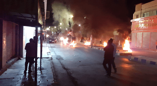 حرق اطارات واعمال شغب بمنطقة المزار الجنوبي بالكرك