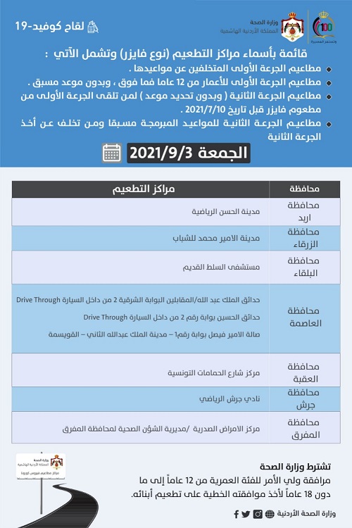 مراكز تطعيم لقاح فايزر ليوم الجمعة - أسماء