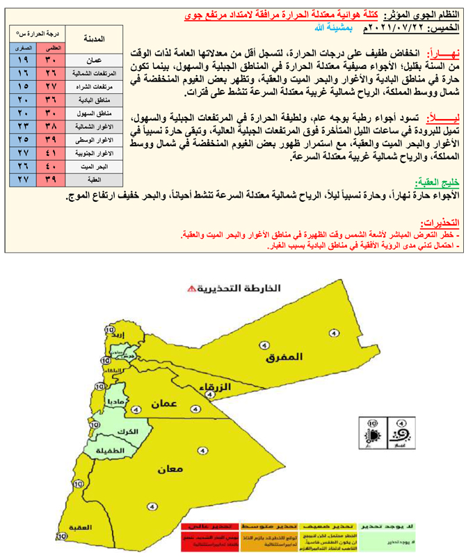 الأردن.. حالة عدم الاستقرار تبلغ ذروتها في هذا الموعد وأمطار غزيرة متوقعة