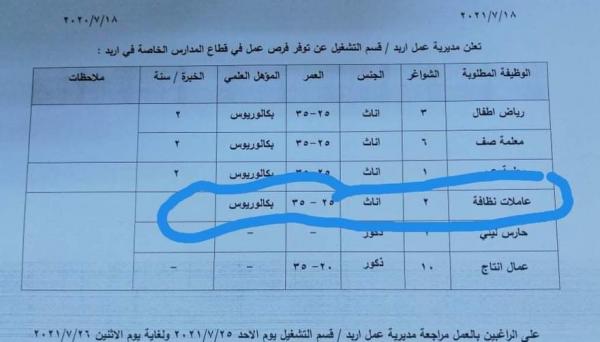 البكالوريوس شرط لوظيفة عاملات نظافة .. وعمل إربد: بالخطأ