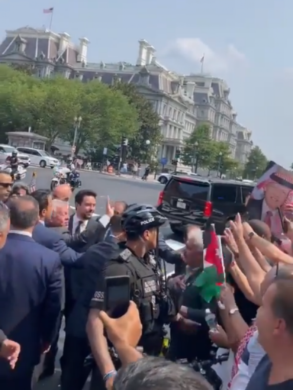 الاردنييون يحتفلون باستقبال جلالة الملك امام البيت الابيض - فيديو