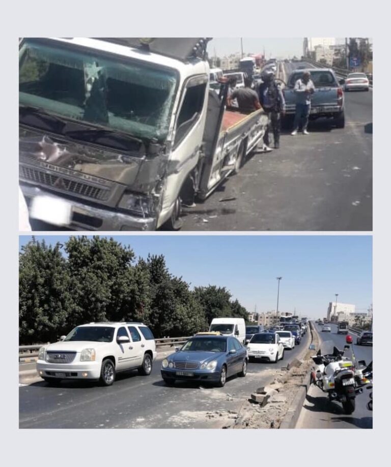تصادم 3 مركبات أعلى جسر الثامن وتحويل السير