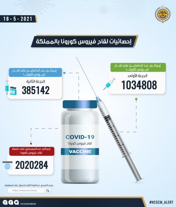 نحو 385 ألف شخص تلقوا الجرعة الثانية من لقاح كورونا في الأردن