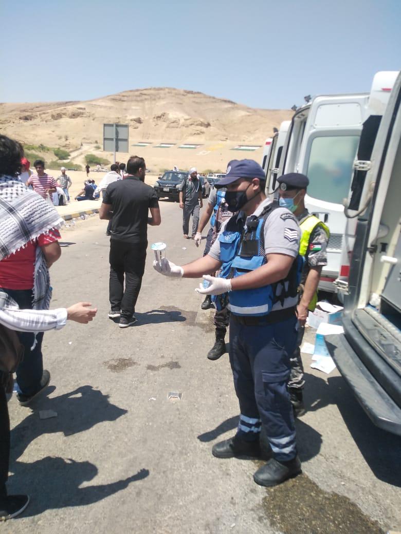 الدفاع المدني يقدم خدمات الاسعاف ويوزع المياه في موقع الفعالية في منطقة الشونة الجنوبية