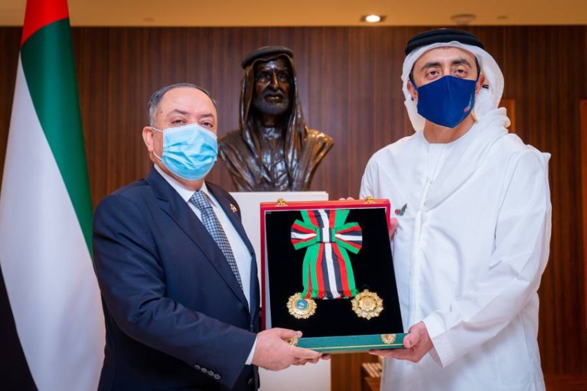 صاحب السمو الشيخ خليفة بن زايد آل نهيان يمنح سفير الأردن وسام الاستقلال من الطبقة الأولى