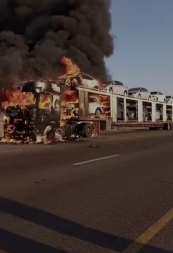 الدفاع المدني يخمد حريق شاحنة محملة بالمركبات في محافظة العقبة