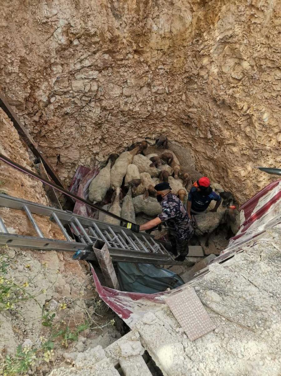 إنقاذ (25) رأس من الأغنام سقطت داخل حفرة / صور