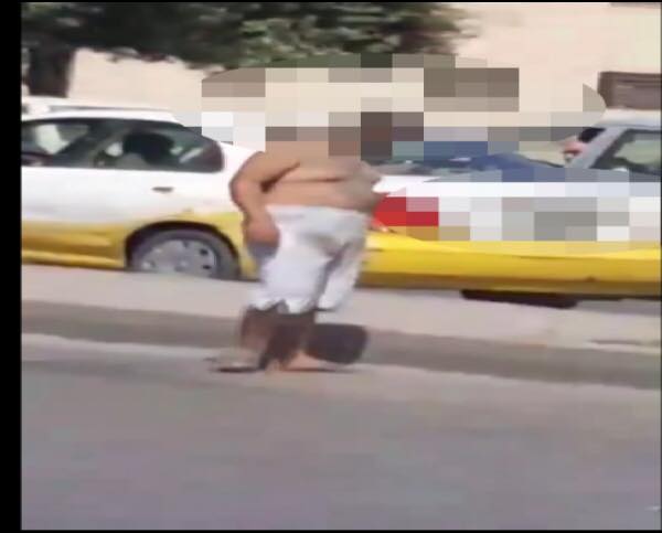 شخص يخلع ملابسه امام مركز امني في ياجوز