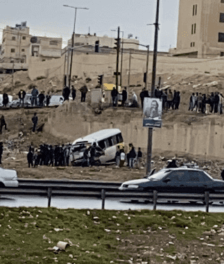 اصابة 7 أشخاص بحادث تدهور حافلة في الزرقاء