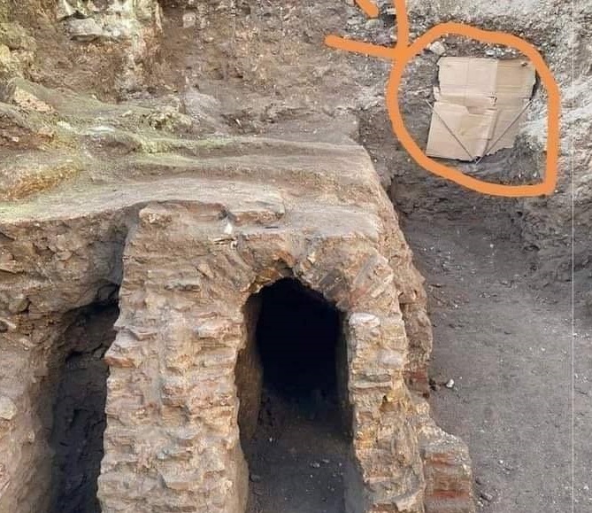 قطعة كرتون ملصقة داخل آثار وسط البلد تثير التساؤلات