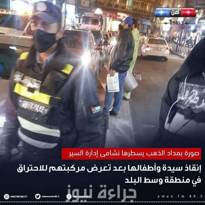 نشامى السير يتمكنون من إنقاذ سيدة وأطفالها احترقت مركبتهم بوسط البلد