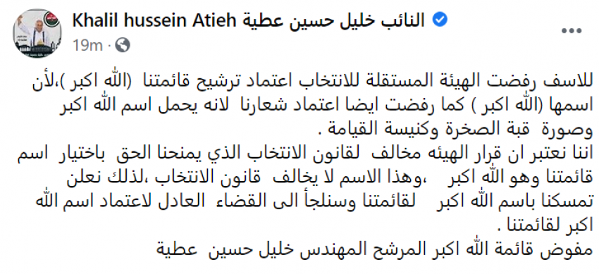 رفض ترشيح قائمة خليل عطية .. والاخير: سنلجأ للقضاء