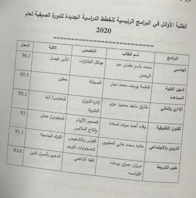 أوائل الأردن في امتحان الشامل - أسماء