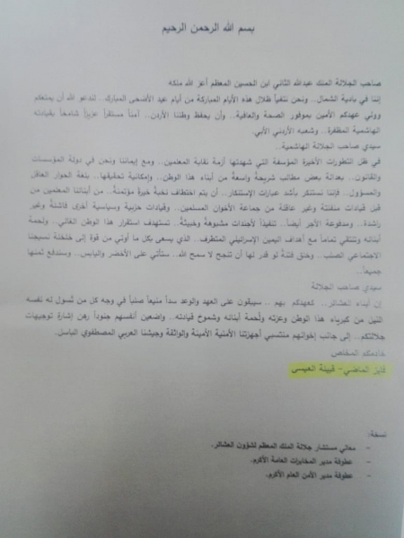 قبيلة العيسى: نضع أنفسنا جنوداً رهن إشارة توجيهات جلالة الملك