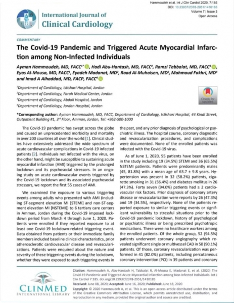 دراسة طبية اردنية : ضغوطات نفسية بسبب كورونا قد تؤدي إلى الجلطة القلبية