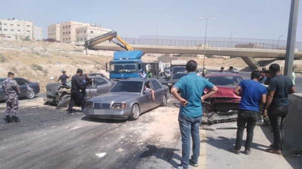 شاهد بالصور .. إصابتان احدهما بالغة بحادث تصادم على طريق الـ 100