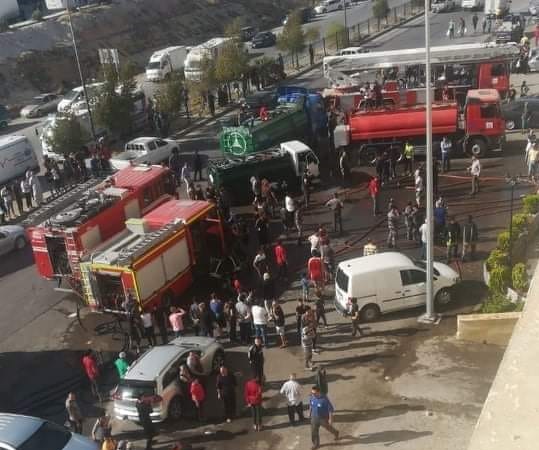 اصابات بحريق كبير داخل مخبز على اوتوستراد الزرقاء