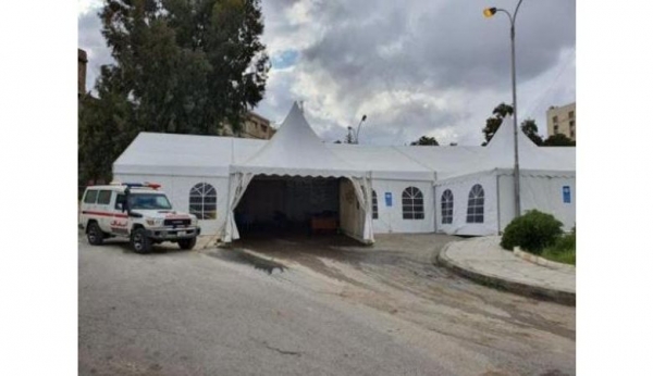 خيمة فحص كورونا للمراجعين قبل دخولهم إلى مستشفى البشير