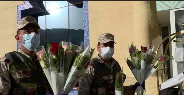الجيش يودع المحجور عليهم بالورود