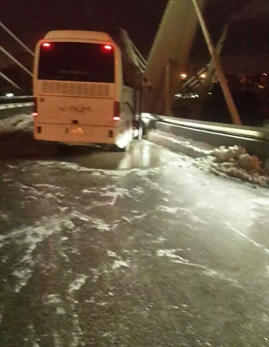 حالت العناية الالهية دون تدهور حافلة على جسر عبدون، ووسقوطها منه، بسبب حالة الإنجماد التي شهدتها الشوارع في العاصمة عمان.