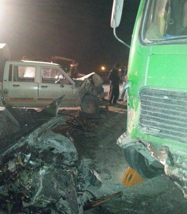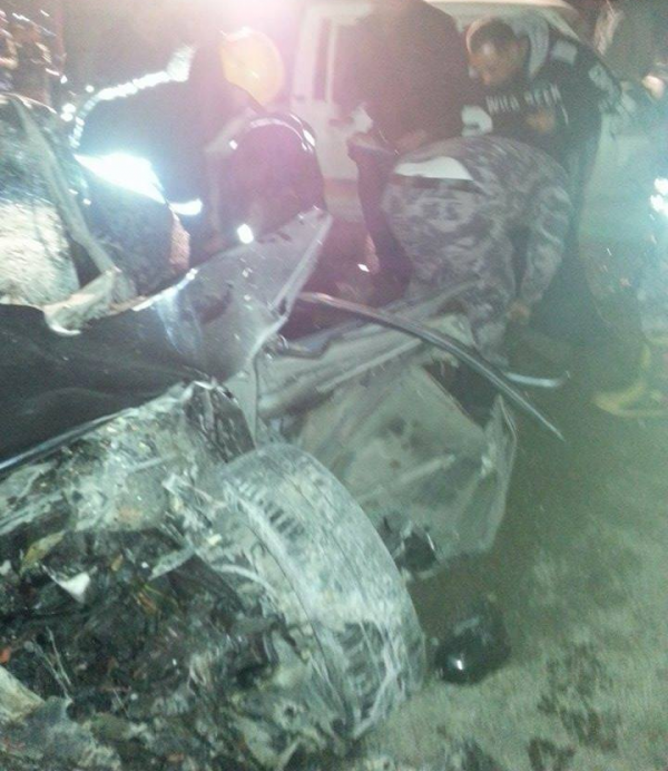 وقال شاهد عيان أن المركبة حاولت أن تتجاوز عن القلاب فاصطدم بها وفقد السائق السيطرة عليها مما أدى لاصطدامها بالـ'بيك أب' ايضاً.