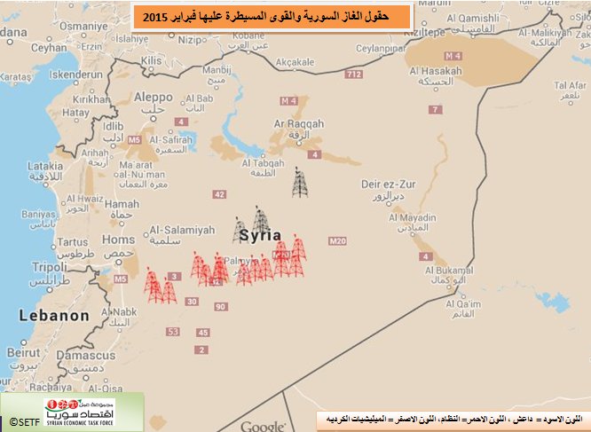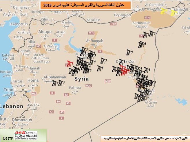 استولى تنظيم داعش على 95 في المئة من حقول وآبار النفط السوري، فيما تسيطر الميليشيات الكردية والنظام على ما تبقى، بعد أن كانت خريطة القوى المسيطرة على حقول النفط السورية إلى غاية يونيو من العام 2014 مختلفة تماما، إذ كانت حينها بيد القوى العشائرية والجيش الحر وقوى أخرى معارضة.