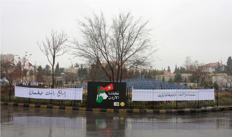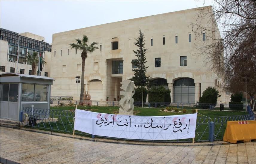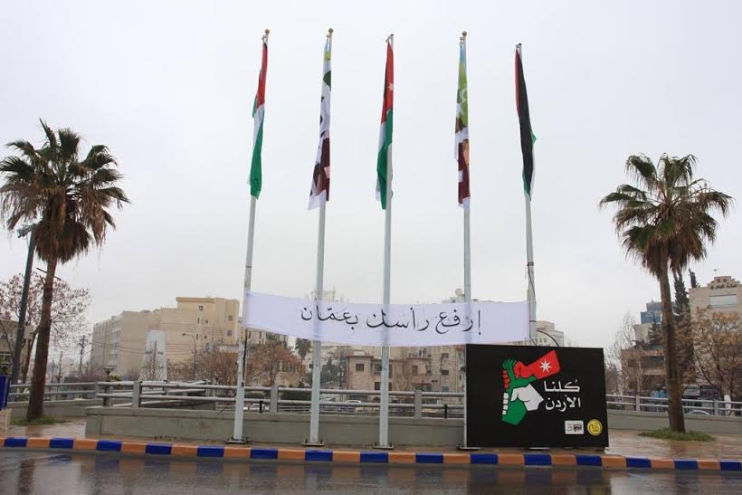 ووجه أمين عمان عقل بلتاجي كوادر الأمانة المعنية مساء أمس وبعد خطاب جلالة الملك الى رفع الأعلام الأردنية وأعلام أمانة عمان والعبارات التي تضمنها خطاب جلالة الملك عبدالله الثاني وبدأها بعبارة ' ارفع رأسك ' '.