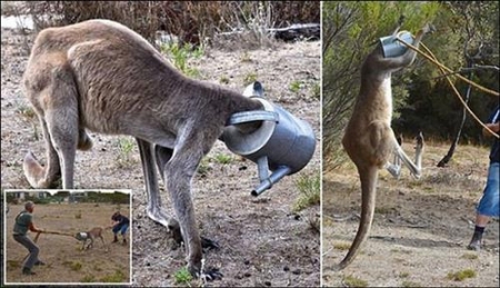 • إنقاذ كنغر علق رأسه داخل إبريق للري - صور