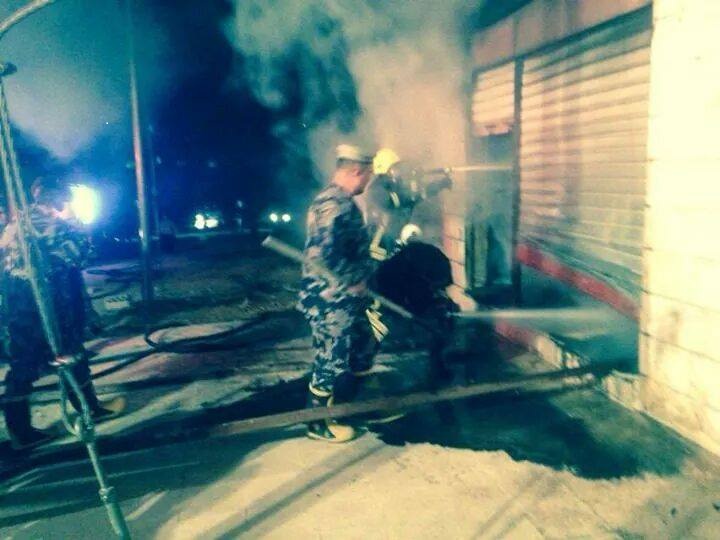 وقامت فرق الاطفاء بالسيطرة على الحريق قبل انتقاله للمخازن المجاورة ودون حدوث إصابات.