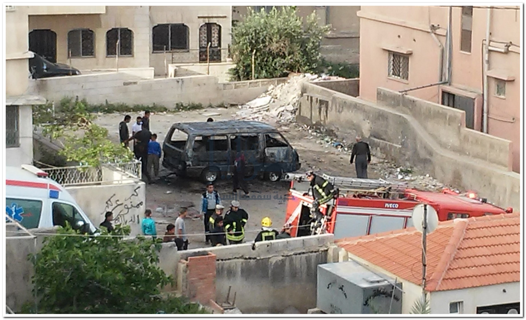 اندلع حريق في باص نوع ' كيا ' صباح اليوم الاثنين بمنطقة القويسمة - حي النهارية بالعاصمة عمان .