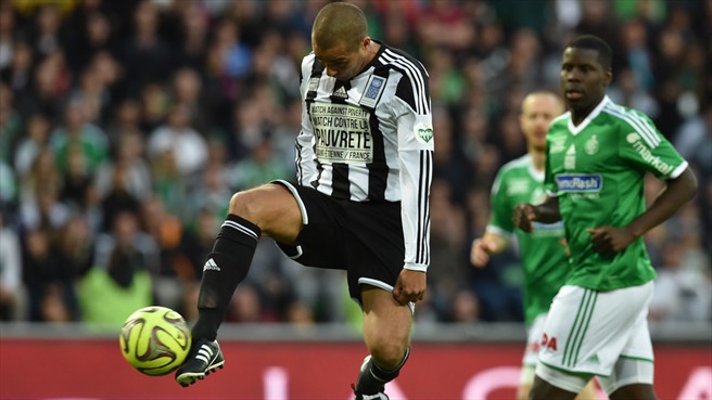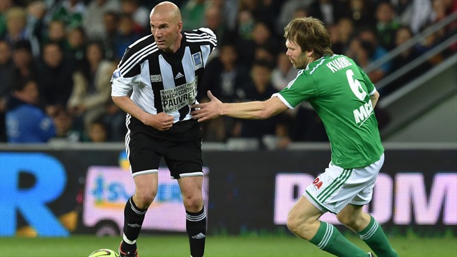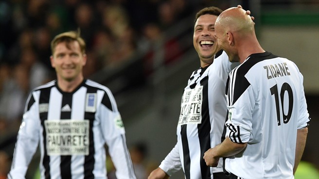 فاز فريق نجوم سانت اتيان على فريق آخر مكون من أصدقاء زين الدين زيدان والبرازيلي رونالدو في مباراة خيرية لدعم محاربة مرض الإيبولا مساء الاثنين.