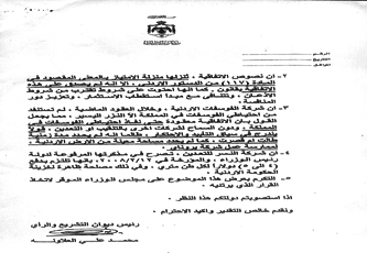 وقال رئيس ديوان التشريع والرأي الاسبق محمد علي العلاونه في رده على كتاب لرئيس الوزراء الاسبق نادر الذهبي' ان مصلحة الخزينة الاردنية تستدعي ان تعيد حكومة المملكة الاردنية الهاشمية النظر في هذه الاتفاقية , ويسعفها في هذا الاطار ما ورد في رسالة الضمانات من ان اي طلب يقدم بشان رخص التنقيب او التعدين يحال الى شركة الفوسفات الاردنية فاذا لم توافق خلال مدة تسعين يوما من تاريخ تقديم الطلب يكون للحكومة الحق في منح الترخيص والتعدين للشركة التي تتقدم بالطلب'.