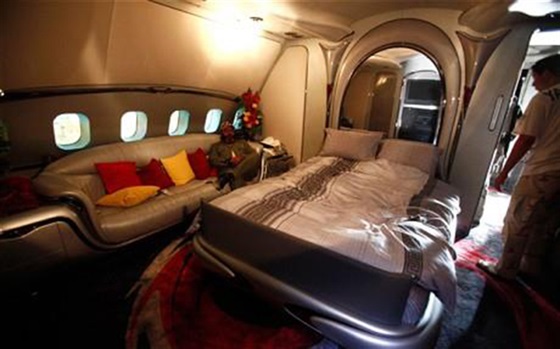 من أفخم الطائرات التي قد تراها في حياتك هي طائرة العقيد 'معمر القذافي' الرئيس الليبي السابق، حيث هي نسخة خاصة معدلة من طراز أيرباص A340 تصميمها الداخلي هو ما يميزها، فالأثاث اكتسى بالجلد الطبيعي، وزينت العديد من التحف بماء الذهب، وتم وضع سرير القذافي في منتصف الطائرة وذلك حسب أوامره.