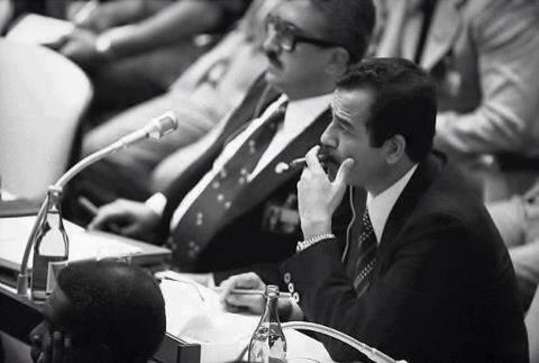 طارق عزيز، سياسي عراقي ينتمي لحزب البعث العربي الاشتراكي، شغل منصب وزير الخارجية (1983–1991) ونائب رئيس مجلس الوزراء (1979–2003) وقد كان مستشاراً قريب جداً للرئيس العراقي صدام حسين لعقود.