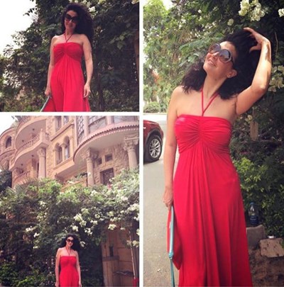 وارتدت غادة في الصور التي نشرتها عبر صفحتها الرسمية بموقع التواصل الاجتماعي "فيسبوك"، فستان أحمر طويل ممشوق على جسدها، وحقيبة يد حمراء أيضًا.