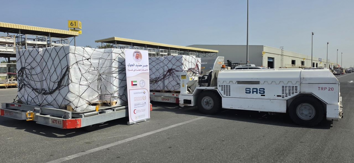بتوجيهات من حاكم عجمان انطلاق طائرة إغاثة لغزة تحمل 3300طرد غذائي